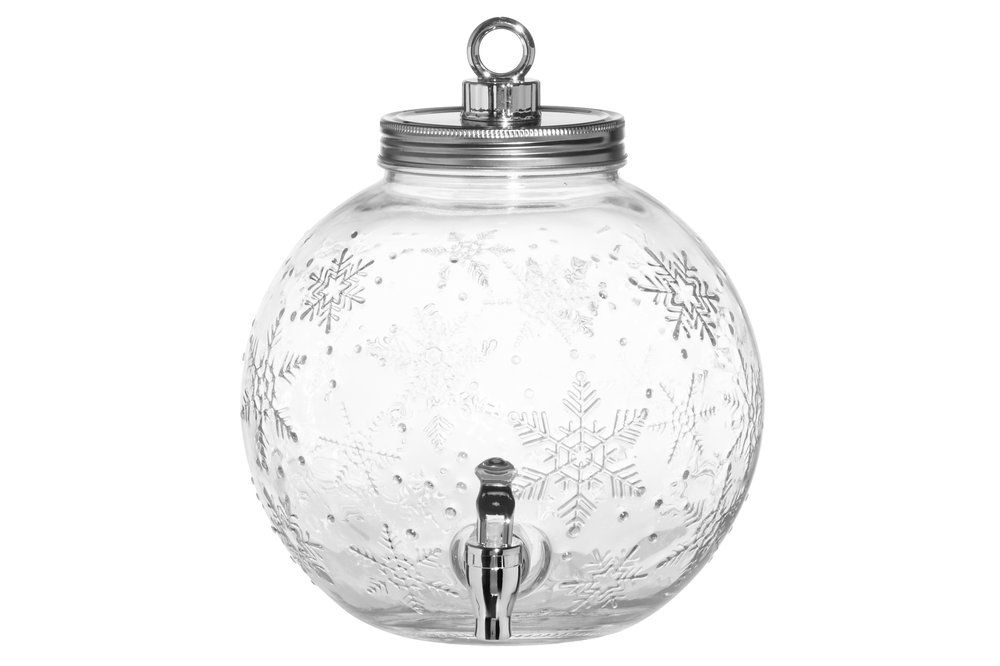 Прекрасен коледен диспенсър за напитки във формата на коледна топка и с красив дизайн на снежинки.