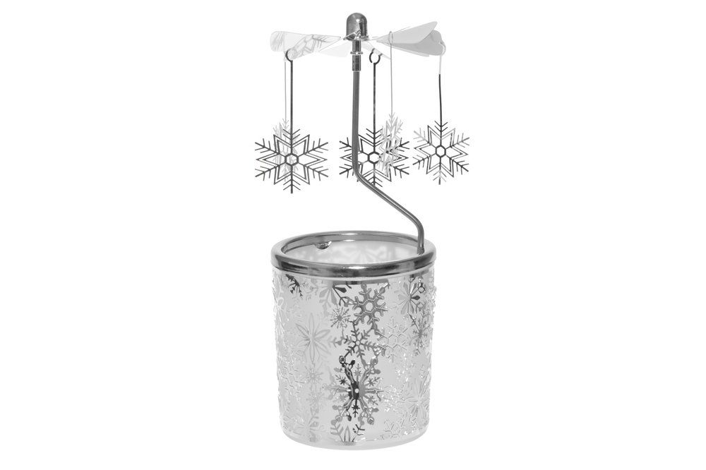 WINTERIA Свещник каросел / въртележка "Снежинки" - цвят сребрист