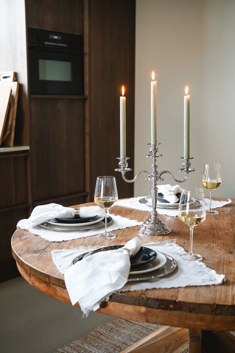 Добавете класическо величие към интериора си с този красиво проектиран трираменен свещник от Zilverstad. Грациозните форми и полираната повърхност отразяват светлината красиво, което го прави истинска забележителност на маса, камина или бюфет.