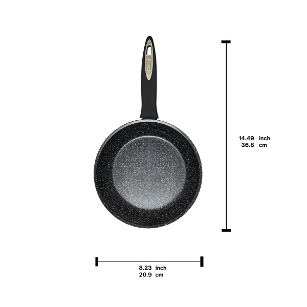 Керамичното незалепващо покритие осигурява гладка повърхност за готвене с минимално количество мазнина, а почистването става бързо и лесно. Ергономичната дръжка лежи стабилно в ръката и прави работата комфортна дори при по-интензивно готвене.