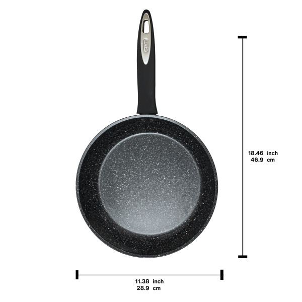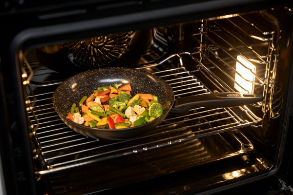 Керамичното незалепващо покритие осигурява гладка повърхност за готвене с минимално количество мазнина, а почистването става бързо и лесно. Ергономичната дръжка лежи стабилно в ръката и прави работата комфортна дори при по-интензивно готвене.